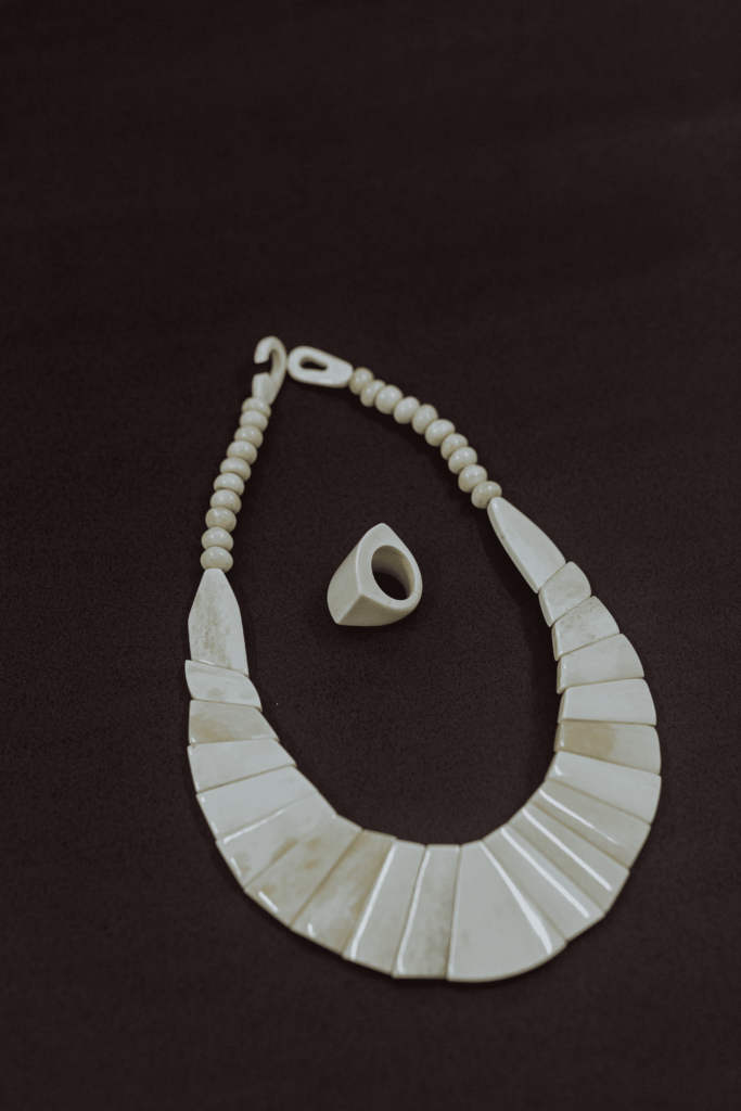 Maria Joselene Bernardo de Souto, conhecida como Jô do Osso, tem 63 anos e é artesã de Cabedelo (PB). Há 41 anos trabalha ressignificando os ossos bovinos que são descartados em sua região. Sua criatividade única transforma o descarte em arte, as plantas e vegetais, em pigmentos. As formas e cores encantam e expressam a possibilidade de ressignificação dos materiais.